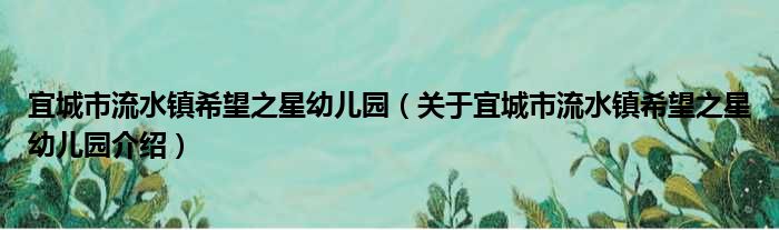 宜城市流水鎮希望之星幼兒園(關于宜城市流水鎮希望之星幼兒園介紹)