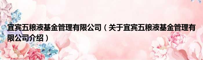 宜賓五糧液基金管理有限公司(關于宜賓五糧液基金管理有限公司介紹)