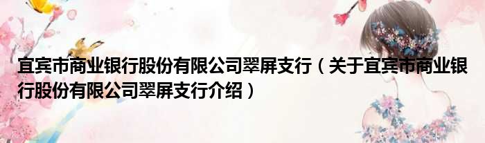 宜賓市商業銀行股份有限公司翠屏支行(關于宜賓市商業銀行股份有限公司翠屏支行介紹)