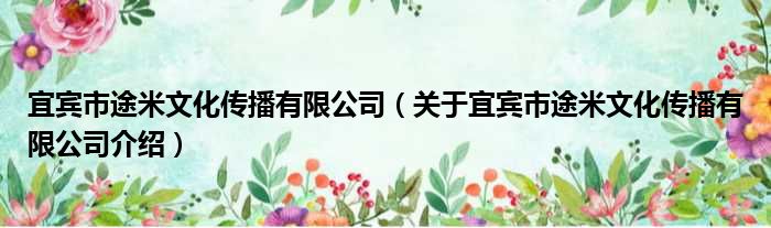 宜賓市途米文化傳播有限公司(關于宜賓市途米文化傳播有限公司介紹)