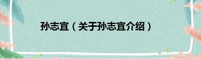 大家好,小耀來為大家解答以上的問題。孫志宜,關于孫志宜介紹這個很多人還不知道,現在讓我們一起來看看吧!