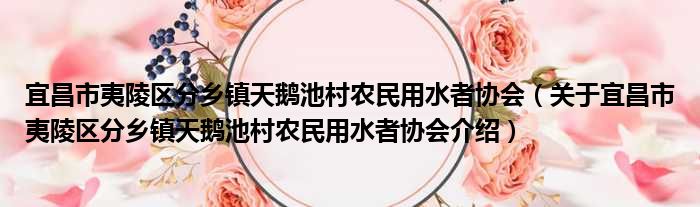 宜昌市夷陵區分鄉鎮天鵝池村農民用水者協會(關于宜昌市夷陵區分鄉鎮天鵝池村農民用水者協會介紹)