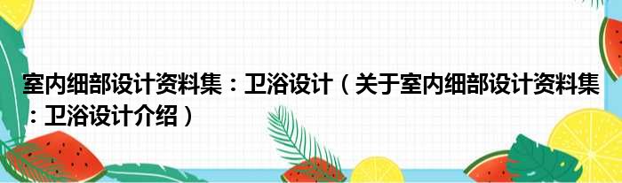1、 《室內細部設計資料集:衛浴設計》是2020年中國建筑工業出版社出版的圖書。?