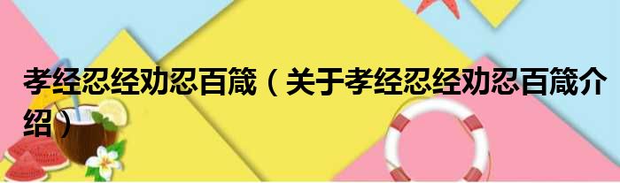 孝經忍經勸忍百箴(關于孝經忍經勸忍百箴介紹)