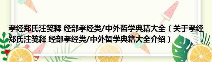 導讀 大家好,小耀來為大家解答以上的問題。孝經鄭氏注箋釋 經部孝經類 中外哲學典籍大全,關于孝經鄭氏注箋釋 經部孝經類 中外哲學典籍大全介