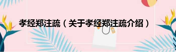 孝經鄭注疏(關于孝經鄭注疏介紹)