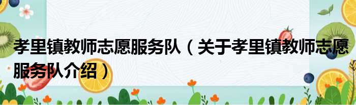 孝里鎮教師志愿服務隊(關于孝里鎮教師志愿服務隊介紹)