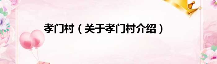 大家好,小耀來為大家解答以上的問題。孝門村,關于孝門村介紹這個很多人還不知道,現在讓我們一起來看看吧!