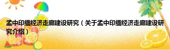孟中印緬經濟走廊建設研究(關于孟中印緬經濟走廊建設研究介紹)