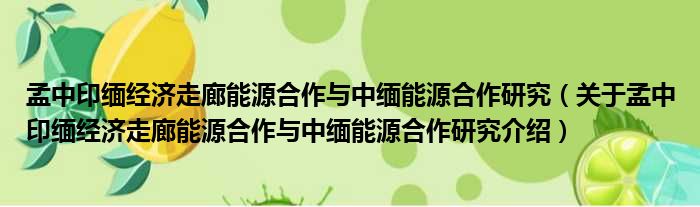 導讀 大家好,小耀來為大家解答以上的問題。孟中印緬經濟走廊能源合作與中緬能源合作研究,關于孟中印緬經濟走廊能源合作與中緬能源合作研究介紹
