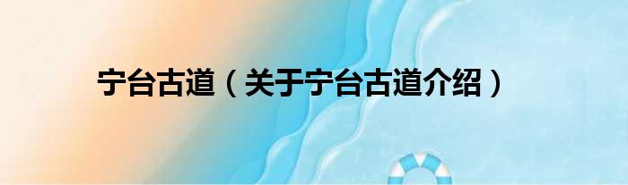 導讀 大家好,小耀來為大家解答以上的問題。寧臺古道,關于寧臺古道介紹這個很多人還不知道,現在讓我們一起來看看吧!1、 【寧臺古道】寧臺古