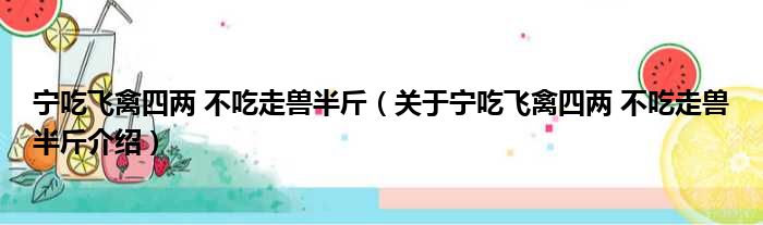 寧吃飛禽四兩 不吃走獸半斤(關于寧吃飛禽四兩 不吃走獸半斤介紹)