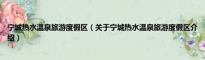 寧城熱水溫泉旅游度假區(關于寧城熱水溫泉旅游度假區介紹)