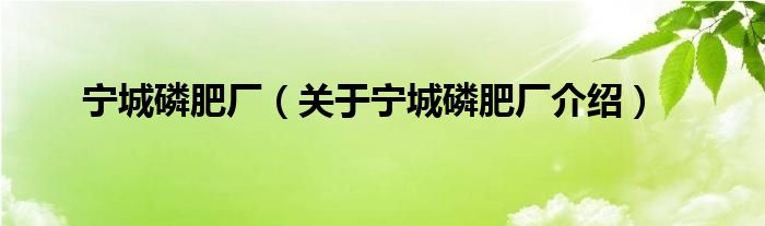 寧城磷肥廠(關于寧城磷肥廠介紹)