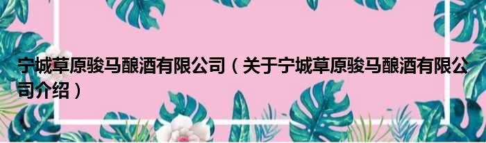 寧城草原駿馬釀酒有限公司(關于寧城草原駿馬釀酒有限公司介紹)