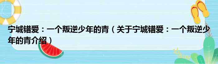 寧城錯愛:一個叛逆少年的青(關于寧城錯愛:一個叛逆少年的青介紹)