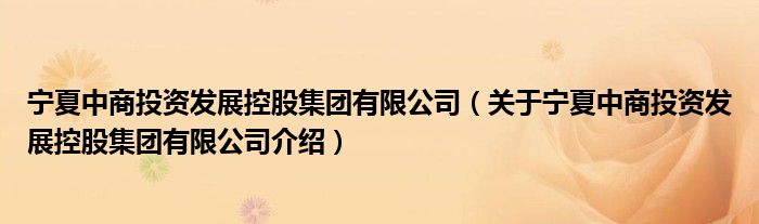 寧夏中商投資發展控股集團有限公司(關于寧夏中商投資發展控股集團有限公司介紹)