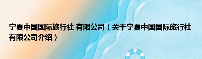 寧夏中國國際旅行社 有限公司(關于寧夏中國國際旅行社 有限公司介紹)