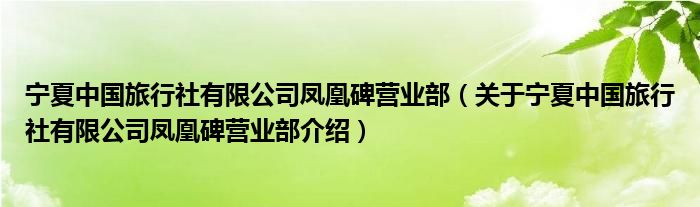 寧夏中國旅行社有限公司鳳凰碑營業部(關于寧夏中國旅行社有限公司鳳凰碑營業部介紹)