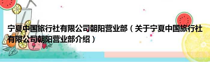 寧夏中國旅行社有限公司朝陽營業部(關于寧夏中國旅行社有限公司朝陽營業部介紹)