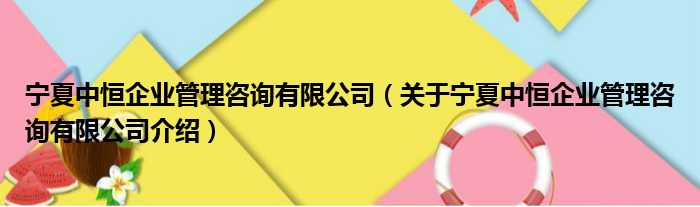 寧夏中恒企業管理咨詢有限公司(關于寧夏中恒企業管理咨詢有限公司介紹)