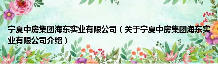 寧夏中房集團海東實業有限公司(關于寧夏中房集團海東實業有限公司介紹)