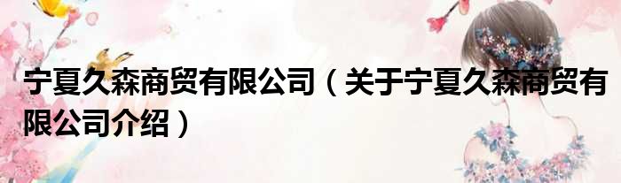 寧夏久森商貿有限公司(關于寧夏久森商貿有限公司介紹)