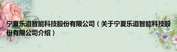 寧夏樂道智能科技股份有限公司(關于寧夏樂道智能科技股份有限公司介紹)