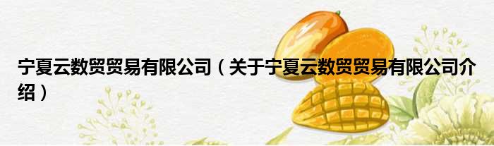 寧夏云數貿貿易有限公司(關于寧夏云數貿貿易有限公司介紹)
