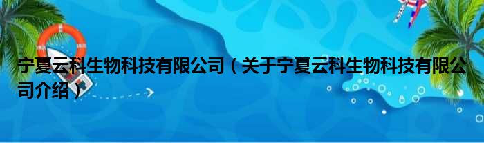 寧夏云科生物科技有限公司(關于寧夏云科生物科技有限公司介紹)