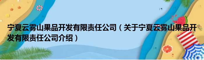 寧夏云霧山果品開發有限責任公司(關于寧夏云霧山果品開發有限責任公司介紹)