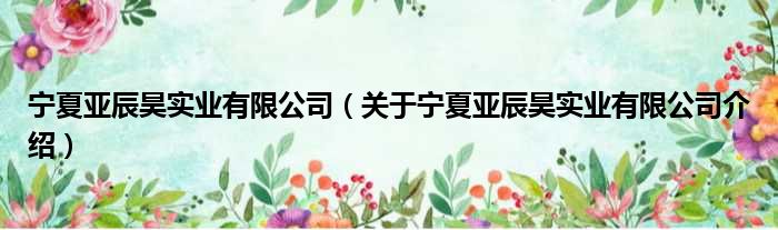 寧夏亞辰昊實業有限公司(關于寧夏亞辰昊實業有限公司介紹)