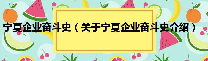 寧夏企業奮斗史(關于寧夏企業奮斗史介紹)