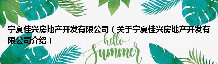 寧夏佳興房地產開發有限公司(關于寧夏佳興房地產開發有限公司介紹)