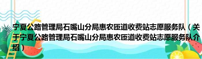 寧夏公路管理局石嘴山分局惠農匝道收費站志愿服務隊(關于寧夏公路管理局石嘴山分局惠農匝道收費站志愿服務隊介紹)
