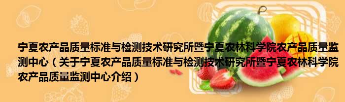 寧夏農產品質量標準與檢測技術研究所暨寧夏農林科學院農產品質量監測中心(關于寧夏農產品質量標準與檢測技術研究所暨寧夏農林科學院農產品質量監測中心介紹)