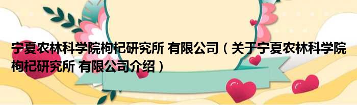 寧夏農林科學院枸杞研究所 有限公司(關于寧夏農林科學院枸杞研究所 有限公司介紹)