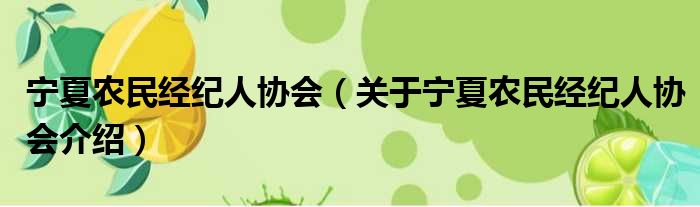 寧夏農民經紀人協會(關于寧夏農民經紀人協會介紹)