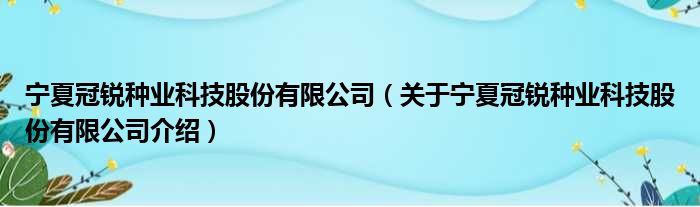 寧夏冠銳種業科技股份有限公司(關于寧夏冠銳種業科技股份有限公司介紹)