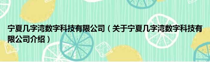 寧夏幾字灣數字科技有限公司(關于寧夏幾字灣數字科技有限公司介紹)