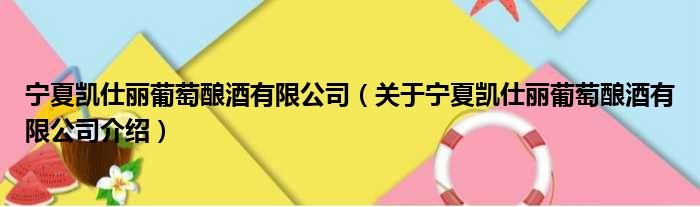 寧夏凱仕麗葡萄釀酒有限公司(關于寧夏凱仕麗葡萄釀酒有限公司介紹)