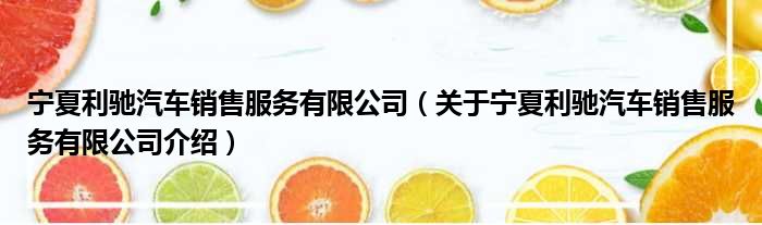 寧夏利馳汽車銷售服務有限公司(關于寧夏利馳汽車銷售服務有限公司介紹)