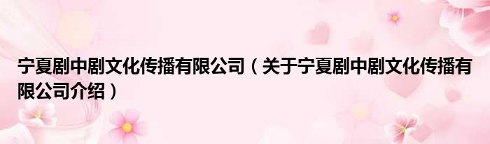 寧夏劇中劇文化傳播有限公司(關于寧夏劇中劇文化傳播有限公司介紹)
