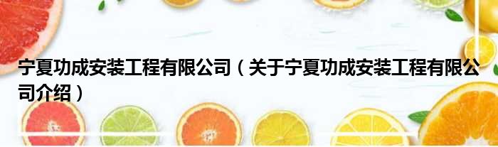 寧夏功成安裝工程有限公司(關于寧夏功成安裝工程有限公司介紹)