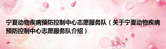 寧夏動物疾病預防控制中心志愿服務隊(關于寧夏動物疾病預防控制中心志愿服務隊介紹)
