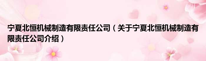寧夏北恒機械制造有限責任公司(關于寧夏北恒機械制造有限責任公司介紹)