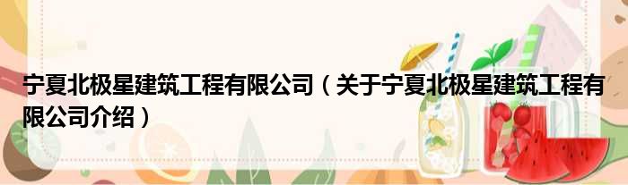 寧夏北極星建筑工程有限公司(關于寧夏北極星建筑工程有限公司介紹)