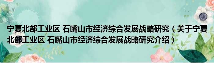寧夏北部工業區 石嘴山市經濟綜合發展戰略研究(關于寧夏北部工業區 石嘴山市經濟綜合發展戰略研究介紹)