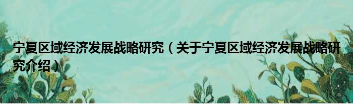 寧夏區域經濟發展戰略研究(關于寧夏區域經濟發展戰略研究介紹)