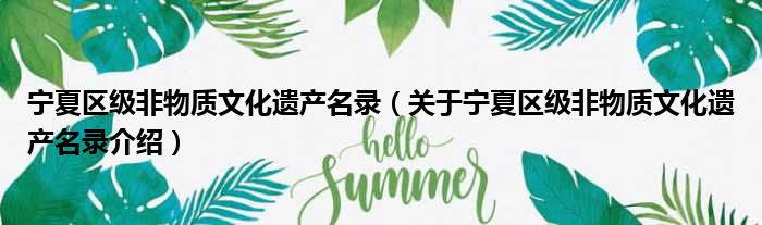 寧夏區級非物質文化遺產名錄(關于寧夏區級非物質文化遺產名錄介紹)